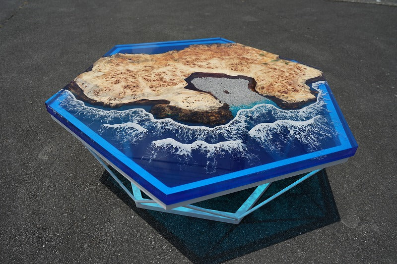 RESIN SPACEの代表デザイナーが完成させた自然の美しさをそのままの、本物のレジンテーブル。